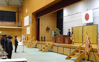 また退任式では、異動になる職員の紹介と一言があり、生徒を代表して生徒会より感謝の言葉と花束が贈られました。