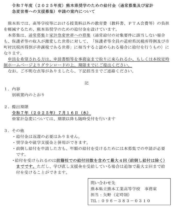会議・研修 令和7年度(2025年度)熊本県奨学のための給付金(通常募集)の申請について
