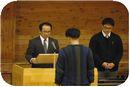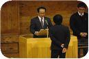 役員へのお礼と新生徒会役員へ1年間様々な学校行事をお願いしますと