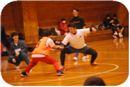 初の種目で、ドッチビーが行われ先生方も参加しました。