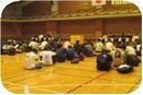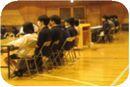 全校生徒が第二体育館に集合し、生徒会役員の開会の