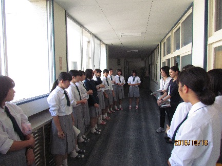 球商百貨店まであと9日となり、朝のSHR前に接客八大用語の練習に熱が入る。朝一番から大きな声であいさつができるように生徒自ら校内一斉放送で音頭をとり、全校生徒が一斉にあいさつの練習に取り組んでいる。元気あふれる生徒たちが皆様を「おもてなし」いたします。