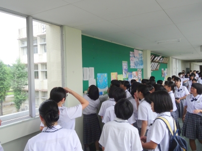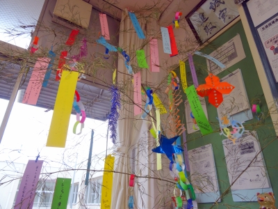 職員室から各教室を見ると、七夕の飾りものが各教室に。