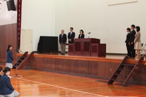生徒、職員の代表がこれまでの生活や人生をふり返って体験したことや気付いた事を、球商生への熱いメッセージとして送る講話です。職員代表の戸塚先生からは、ソフトテニスを通して、日頃の生活や取り組みが勝利という結果に結び付くことから『結果を求めることが大切』であると球商生にエールを送っていただきました。