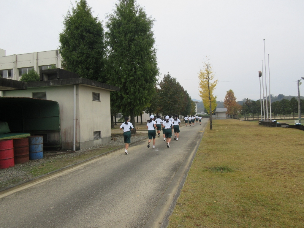 寒風吹く中、12月15日(金)に実施予定の校内長距離走大会の練習が始まった。制限時間内に完走できるよう、教員自ら先導しペース配分等を指導されている。当日全員が完走できるように頑張りましょう!