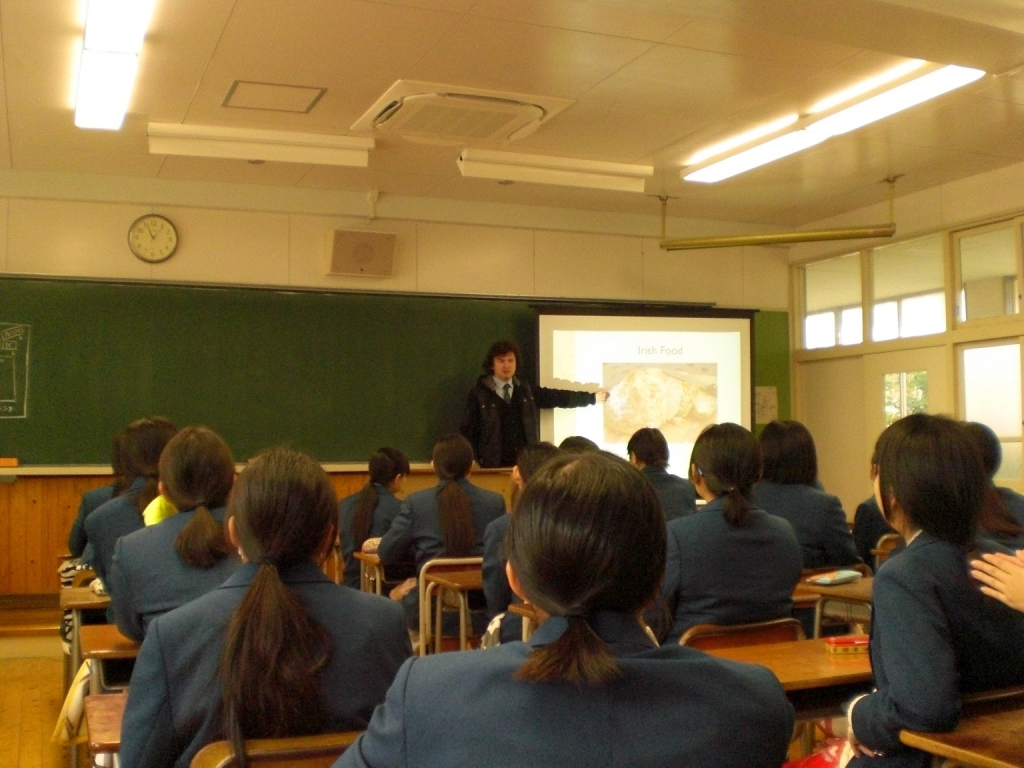 今年の夏から本校に来られた、ALTのチャールズ先生の授業を受ける3年生の様子です。今回は母国であるアイルランドについて教えていただきました。10月はハロウィーンについての授業をされるなど、いつも生徒のためにテーマを考えて楽しい授業をしてくださいます。