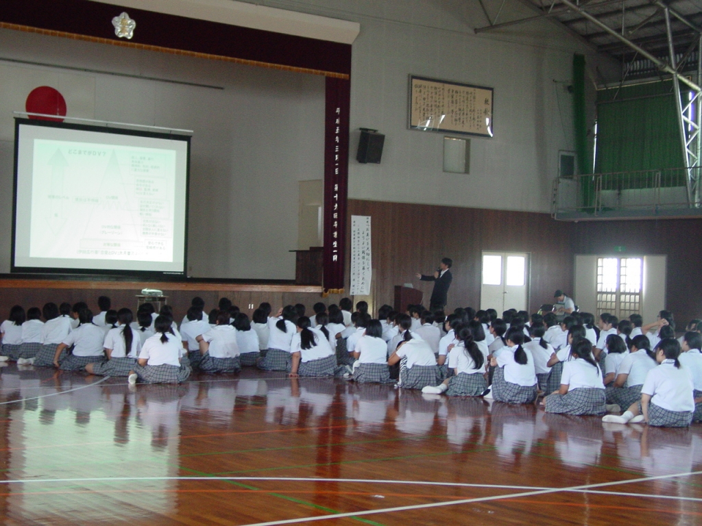 性教育講演会 投稿日時 : 2015/09/09 担当職員 性教育講演会今日は外部から講師の方を招いて、性教育講演会がありました。講演会は、1年生から3年生まで、段階に合わせてそれぞれ違った内容で行われました。特に3年生は、これから社会に出て行く上で大切な知識を身につけようと、顔を上げて真剣にお話を聞いていました。
