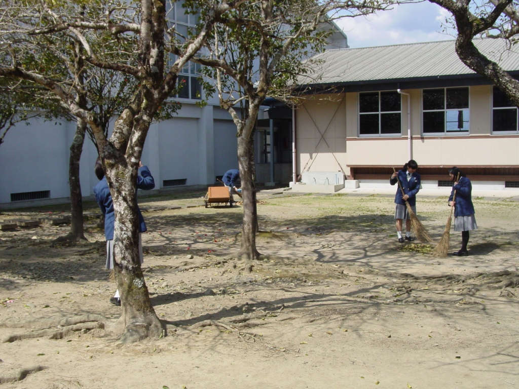 日に日に春が近づいています。 投稿日時 : 2016/03/07 担当職員 学校の春の場面沿道の春(学校前の道路)明日から2日間、後期選抜学力検査行われます。先日は卒業式が行われ3年生103名がここ球磨商業高校を巣立っていきました。この時期の校内は、慌ただしく感じます。今日は、午前中授業の後、明日のための準備がありました。校舎の外では、落ち葉の清掃活動を行いました。外を見渡すと沿道の菜の花に目が止まりました。春は、慌ただしさの中に訪れ去っていきます。