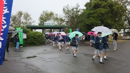「くまもと教育の日」の取り組みの一環として、本日小雨の降る中くまがわ鉄道の各駅にて、「人吉・球磨地区県立学校PTA合同キャンペーン」が実施された。登校する生徒たちに、明るく元気の良いあいさつをかわされていた。