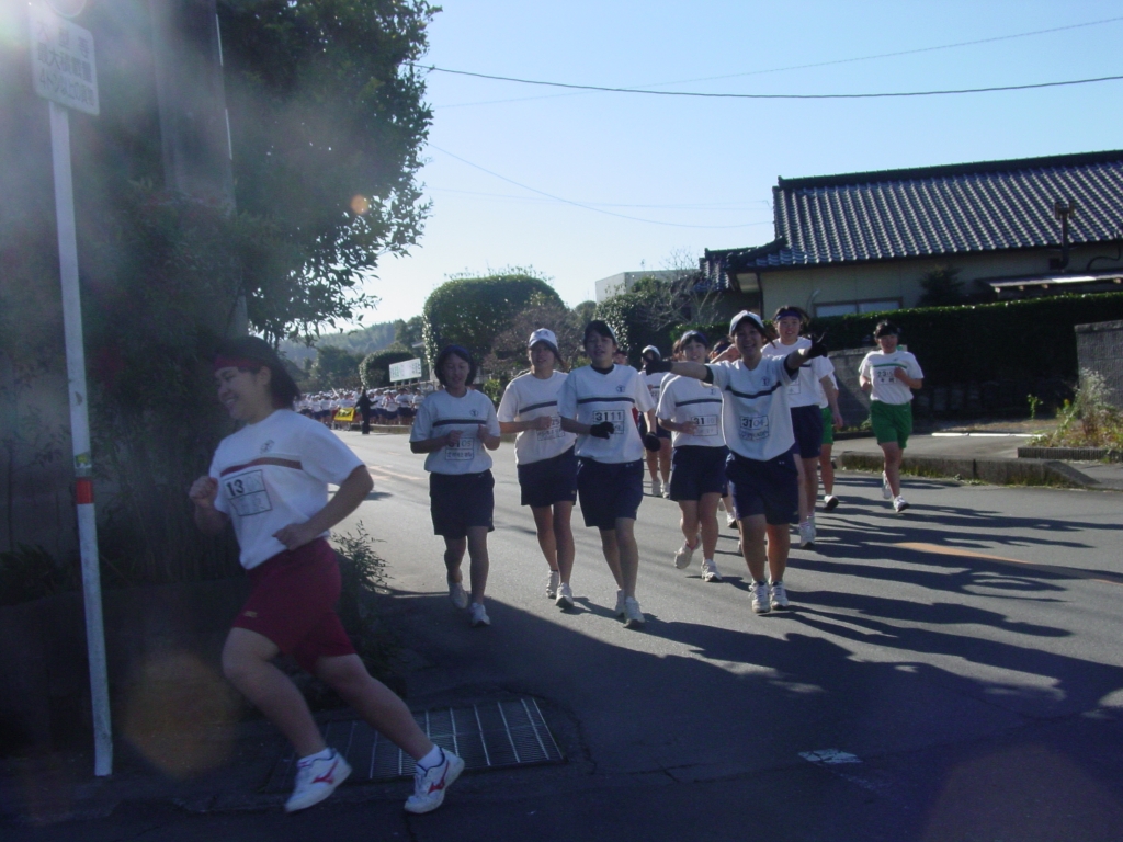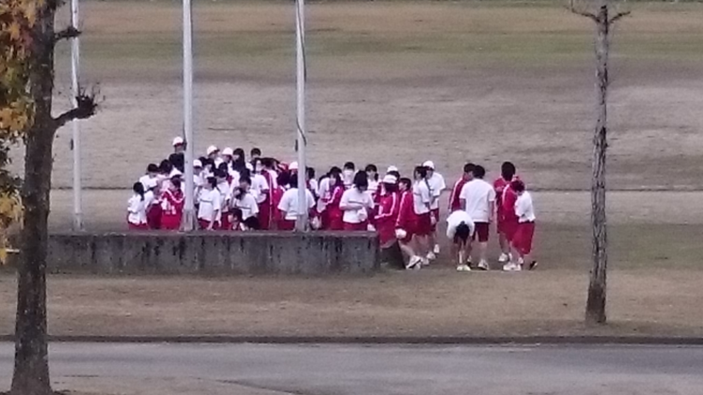 これは今日の体育の様子です。寒い寒いと言いながも夏服になって走る準備をしている様子です。明日はかなり寒いと思いますが、寒さに負けずに球磨商魂に火をつけて走りぬいて欲しいと思います。明日は沿道での応援よろしくお願いします。