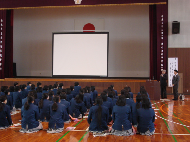 いよいよ明日、3月1日(日)は卒業証書授与式です。今日はその予行練習を行いました。練習とはいえ、うっすらと涙を浮かべている3年生の姿も見られ、生徒たち自身も「いよいよ卒業だ」という実感が湧いてきたようです。卒業生へのたくさんのエールをお待ちしております。