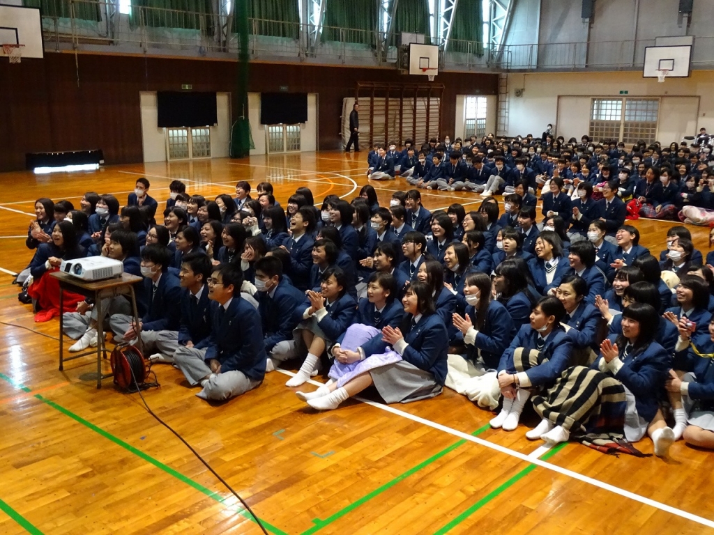 本校では3年生に対して、1・2年生から今までの感謝と卒業への祝福の気持ちを伝える予餞会という行事が行われます。在校生や現職員からのメッセージ・職員発表など盛りだくさんの内容でした。終始笑顔が溢れ、思い出に残る時間となりました。