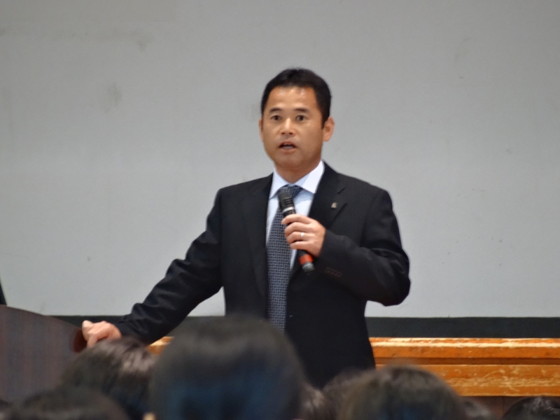 生徒、職員の代表がこれまでの生活や人生をふり返って体験したことや気付いた事を、球商生への熱いメッセージとして送る講話です。職員代表の戸塚先生からは、ソフトテニスを通して、日頃の生活や取り組みが勝利という結果に結び付くことから『結果を求めることが大切』であると球商生にエールを送っていただきました。