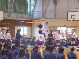 校長先生からの講話や進路指導講話、集団行動などを実施し、午後からはクラスチームごとに分かれての『ビーチボールバレー大会』です。