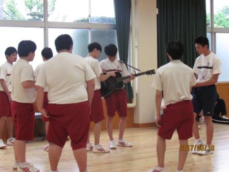 今年度の体育大会から、全学年の男子生徒によるダンスがプログラムに組み込まれました。昨日の雨の影響で、室内での練習となりましたが、ダンスリーダーを中心に熱心に練習しています。学年に関係なく、みんなとにかく仲が良く、笑顔が絶えません。