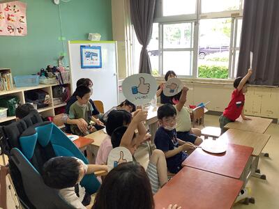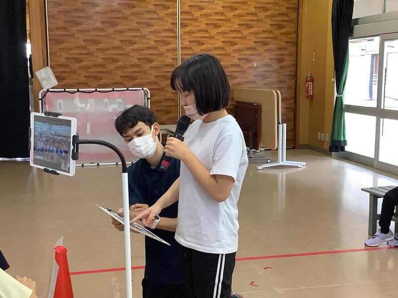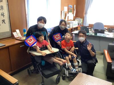 今日(9月26日)、にじいろ学級の子供たちからインタビューを受けました。質問内容は「球磨支援学校のいいところはどんなところですか」「校長先生の趣味は何ですか」「校長先生の好きな食べ物は何ですか」「校長先生の仕事について教えてください」の4つでした。精巧なマイクやスピーカーが準備され、本格的なインタビューにとても緊張しました。子供たちはいつもと違う景色の校長室に戸惑いながらも一所懸命に質問してくれました。にじいろ学級の子供たちは色々なことに興味を持ち、日に日に活動範囲を広げるなど、好奇心いっぱいに学校生活を送っています。これからも様々な体験をとおして一歩一歩成長してくれると感じています。