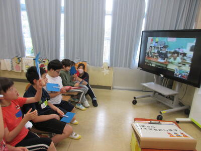 梅雨入りしましたが、いきなり晴れたり、大雨の天気予報が外れたり、6月半ばなのに熱帯夜になるなど、例年とは違った感じがしています。世界に誇る美しい日本の四季が失われていかなければいいなと思っているのは私だけでしょうか。さて、本校は運動会も終わり、学期はじめのバタバタ感も一段落してきたように感じています。毎朝8時40分。職員朝礼後に先生方がバスの誘導と子供たちのお迎えに向かいます。9時。バスの中から笑顔で手を振る児童、バスを降りてすぐに先生の手を握りに走ってくる児童、一目散に自分の下足箱に向かい、上履きに履き替える児童、元気よく自ら挨拶してくれる生徒、学校は一瞬にして活気に満ちあふれます。そんな中、先日小学部が多良木小学校、黒肥地小学校、久米小学校の子供たちとオンラインで交流及び共同学習会を行いました。写真はその一コマです。事前にお互いからの質問をやりとりし、その回答をする形式で行いました。皆、興味津々、クイズあり、笑いあり、楽しさいっぱいの中で充実したオンライン交流会が行われました。学校ではICTを活用した学習が多くを占めるようになってきました。使い方を工夫すれば本当に素晴らしい学習ツールです。感染対策を講じたうえで、授業参観等も計画していく予定です。保護者の皆様、ICT活用授業を是非一度御覧ください。