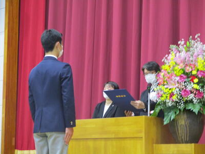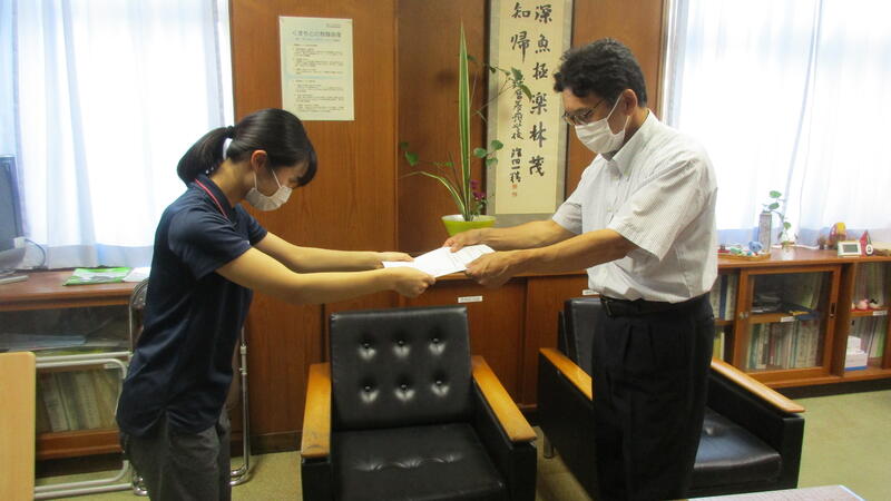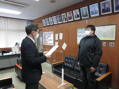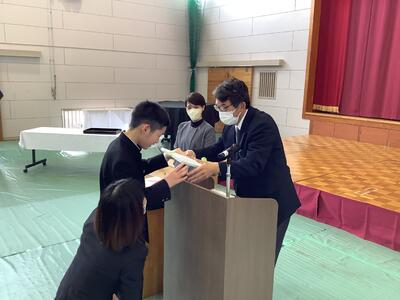 12月12日(月)から12月23日(金)までの2週間、熊本大学文学部4年生の今田さんがボランティア体験をしながら特別支援教育について学んでくれました。今田さんは高等部に所属し、学習面のサポートや門松作りなど子供たちと共に活動してくれました。笑顔を絶やさず、すぐに子供たちに溶け込み、頼れるお兄さんとして、とても信頼されていました。「子供たちとのふれあいの中で、特別支援教育の大切さや楽しさについて学ぶことが出来ました。4月以降も特別支援教育に携わっていきたいと思います。」と感想を述べてくれました。感謝の気持ちでボランティア証明書をお渡ししました(写真)。本校職員の中にも高校時代に本校でボランティア体験をしたことで教師の道を歩んでいる先生がいらっしゃいます。現在、全国的に教員不足が叫ばれています。未来の子供たちへよりよい学習環境を整えていくことが我々に課された使命です。球磨支援学校はこれからも、未来の子供たちを支えていく志高い教育者の育成に努めて参ります。
