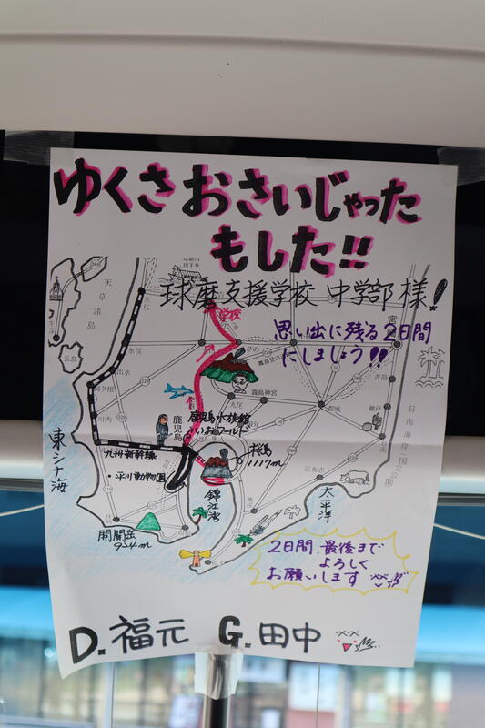 9月21日~22日の2日間、中学部2年生と3年生が鹿児島へ修学旅行に行きました。新型コロナ感染症も心配されましたが、感染症対策を十分に講じたうえで実施しました。八代までバスを使い、新幹線で鹿児島入りし、平川動物園を見学し、桜島へはフェリーで渡り、雄大な桜島を眺め、水族館で楽しく学習できました。帰ってきた生徒に感想を聞くと、誰もが「とてもいい修学旅行だった」「バスガイドさんが面白くてバスの中が楽しかった」「新幹線が良かった」「動物園が面白かった」「フェリーにもう一回乗りたい」「桜島がすごかった」「水族館が綺麗だった」など、話を聞いているだけでその時々の光景と子供たちの笑顔が浮かんできました。2日間の修学旅行がいつまでも素敵な思い出となることでしょう。