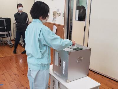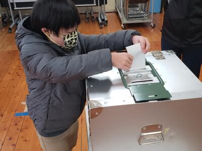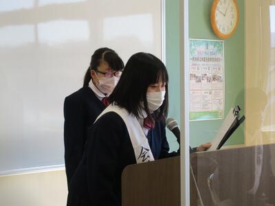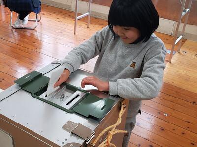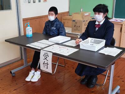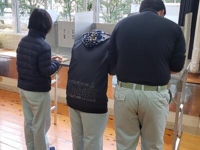 本日2月1日(水)。次期児童生徒会役員選挙を本校会議室で行いました。1月10日(火)の選挙告示から顔写真入りポスター掲示などの選挙運動を経て、本日の立会演説会後に投票を行いました。高等部、中学部、小学部の順に全員が投票し、新会長とそれぞれの学部の役員が選出されました。今日の選挙には多良木町選挙管理委員会から実際の選挙で使用される投票箱、記載代、車椅子用記載代をお借りして来ました。受付から投票まで厳粛な雰囲気の中、子供たちは緊張しながらも真剣に投票していました。期日前投票や代理投票も行い、社会に出てからも対応できる形にしました。2月6日(月)に当選証書授与式と児童生徒会役員引き継ぎ式を行い、新児童生徒会長が挨拶を行います。球磨支援学校がますます素晴らしい学校になるよう、児童生徒全員で頑張っていきましょう。
