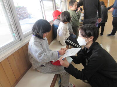 2月13日(月)から1週間、九州ルーテル学院大学人文学部4年生の宮原かんなさんがボランティア体験をしながら特別支援教育について学んでくれました。宮原さんは昨年秋にも本校で2週間の教育実習に励んでくれました。見事、特別支援教育の教員採用試験に合格し、この4月からは県内の学校で勤務予定です。教育実習でもすぐに子供たちと仲良くなり、とても信頼されていました。教育実習では中学部3年生を受け持ちましたが、今回は小学部1年生で研鑽に励みました。年齢の離れた子供たちに接してみたいという本人の希望です。小学部でも常に笑顔を絶やさず、学習面のサポートや自立活動など子供たちと共に汗を流してくれました(写真)。「短い間でしたが、4月からの勤務に向けて特別支援教育の大切さや楽しさについて多くのことを学ぶことができました。子供たちに寄り添える教師になりたいです。」と感想を述べてくれました。感謝の気持ちでボランティア証明書をお渡ししました(写真)。本校職員の中にも高校時代に本校でボランティア体験をしたことで教師の道を歩んでいる先生がいらっしゃいます。現在、全国的に教員不足が叫ばれています。未来の子供たちへよりよい学習環境を整えていくことが我々に課された使命です。球磨支援学校はこれからも、未来の子供たちを支えていく志高い教育者の育成に努めて参ります。