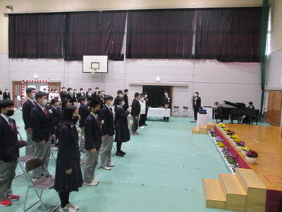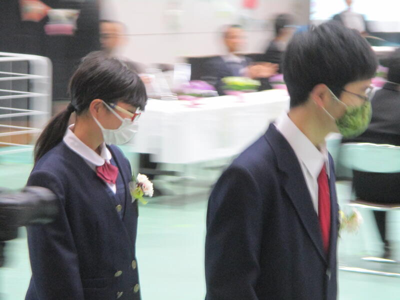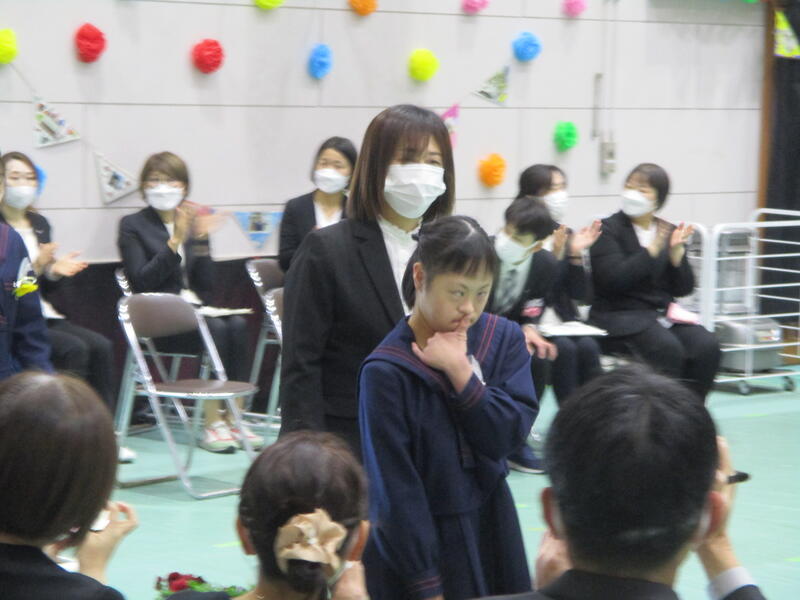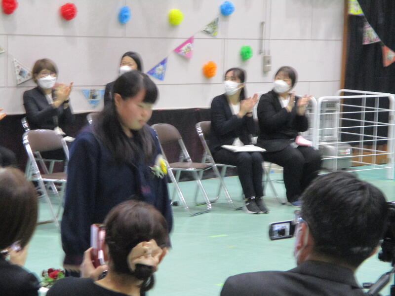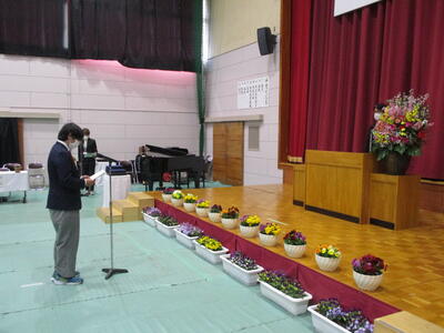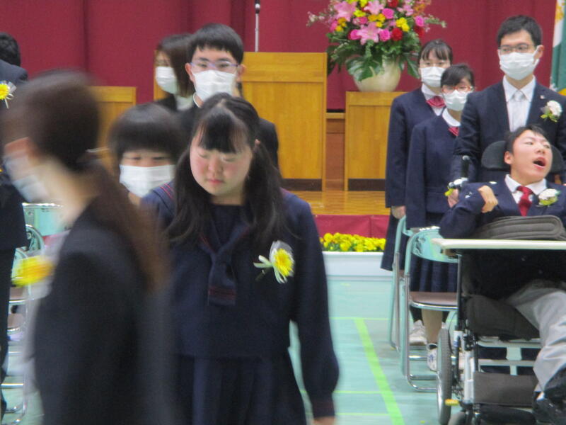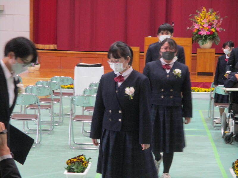 当日は春の穏やかな日差しに恵まれ、多くの御来賓や保護者の方々に祝福していただきました。体育館の壁面は全校生徒の顔写真や手作りの紙花で飾りつけをし、フロアーは高等部で育てた生花が一面に広がり、晴れの舞台にふさわしい雰囲気となりました。それぞれが、それぞれの価値や目標に向かって、それぞれの速度で歩みを進めてくれると期待しています。