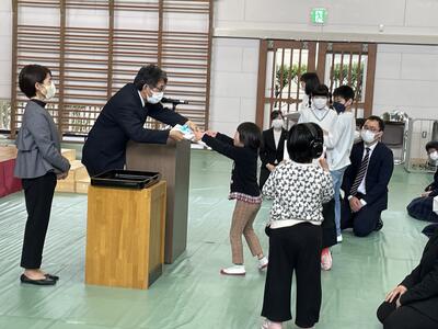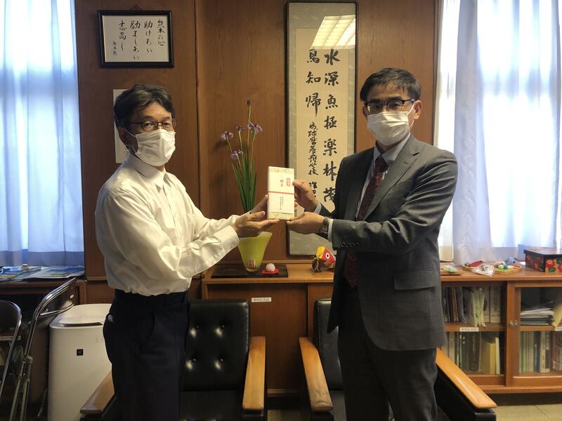 5月9日(火)に一般財団法人熊本県教育会館より、青木副理事長様が来校され、図書カードを寄贈いただきました。令和6年度移転の新校舎に、子どもたちの読書活動がより豊かなものとなるよう、新しい図書を購入させていただきたいと考えております。心より感謝申し上げます。
