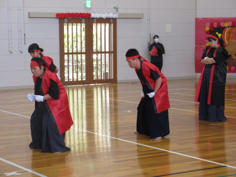 各学部通信でもお伝えしているとおり、5月20日(土)に令和5年度、球磨支援学校運動会を開催しました。数日前からの雨でグラウンド状態が悪く、体育館での実施となりました。開会式に続いては、高等部による応援合戦です。何度も壁に当たり、一つずつ課題を解決し、時には涙して協力しながら出来上がった素晴らしい作品でした。その後、小学部、中学部とそれぞれが精一杯のパフォーマンスで、各所に見ごたえのある感動的な運動会となりました。練習の成果が十分に発揮された内容でした。保護者の皆様にも人数制限をしながらステージから観覧していただくことが出来ました。詳細は学部通信を参照してください。