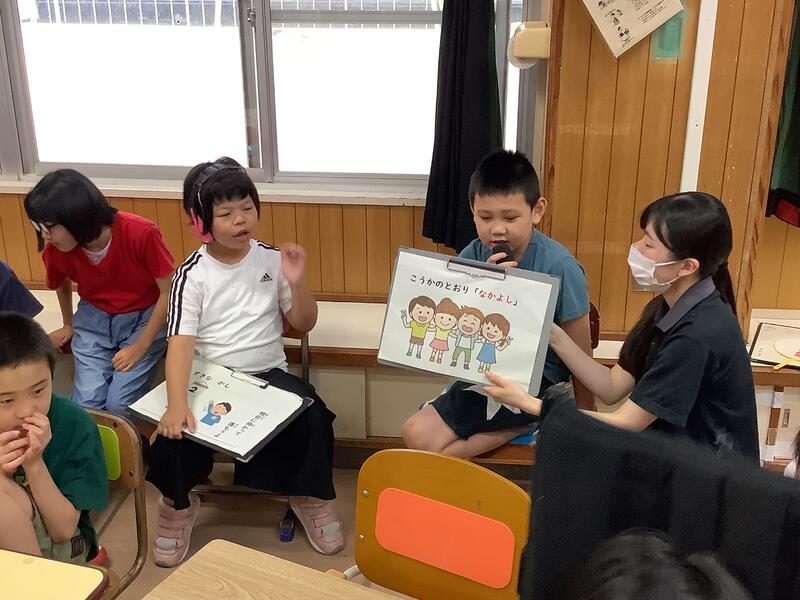 今週から2週間、京都女子大学の那須さんが学生ボランティアとして頑張っています。那須さんは来年度、本校で教育実習を予定しており、少しでも子供たちと関わりたいと1年前から体験実習に来てくれました。将来は教育現場で特別支援教育に携わっていく夢を持っている志の高い学生さんです。
