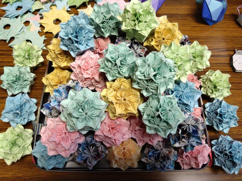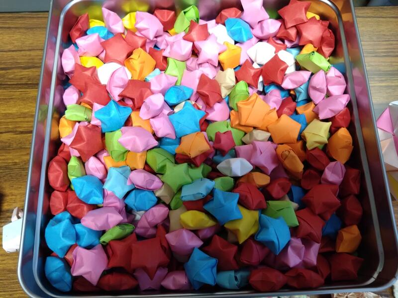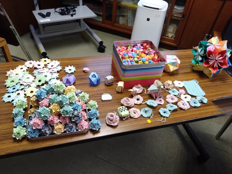 「校長先生、これ作ったんで見てください」と校長室にやってきた高等部3年生のY君。せっかく持ってきてくれたので校長室に飾ることにしました。紙製品は全て折り紙だけで作ったそうです。縫い物はアクリルたわし兼用です。缶の中の小さい球は2千個くらいは作ったそうです。1つ作るのに数十分から数時間、中には何日もかけて完成させた物もあります。手に取ってみると本当に精巧に作られていて、雑な面が全く見当たりません。集中力、忍耐力、作成意欲、冷静な心、正確性、独創性、美意識などY君が持っている資質能力に感心するばかりです。私は鶴1羽折るのに30分かかり、しかも若手の先生からカラスですかと言われる始末です。Y君の作品は8月17日(木)に人吉のカルチャーパレスでも展示予定です。是非見に来てください。本当に凄いですよ。
