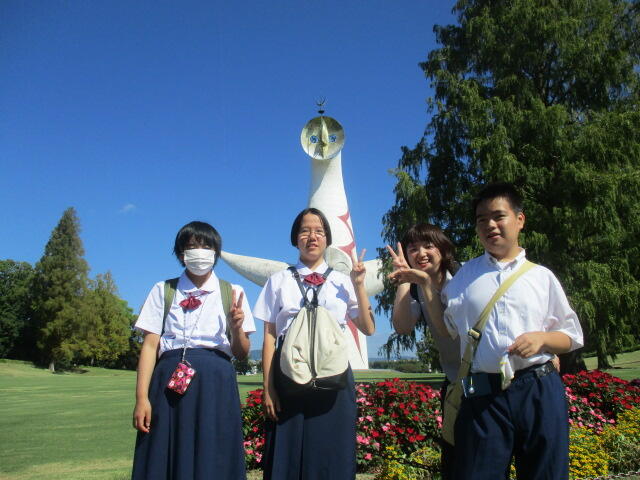 9月27日(水)~29日(金)まで、高等部2年生は修学旅行に行ってきました。大阪城、USJ、通天閣、太陽の塔などを見学し、多くの学びがありました。新幹線の移動では車内のエチケットや時間を守ることの大切さを学び、貸し切りバスではガイドさんとの会話を楽しみました。初めて見る大阪城の大きさに圧倒され、USJの人の多さに圧倒され、新世界で食べたたこ焼きの美味しさに圧倒され、芸術が爆発している太陽の塔に圧倒された素晴らしい三日間でした。