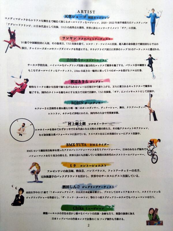 メンバーは世界的サーカスのシルクドソレイユや中国雑技団等で活躍されている方々です。人吉球磨地区では初の公演となります。子供たちが心から喜び、一生の記念になるような最高のパフォーマンスを約束してくださいました。子供たちのはじける笑顔が目に浮かびます。成功に向けて皆様のご指導ご協力を賜りますようよろしくお願いいたします。