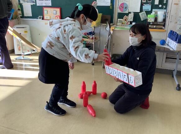 12月13日(水)に小学部「にじいろクラス」でボーリング大会を開催しました。なんとボールもピンも児童と先生との手作りでした。毎日、練習を重ねた結果、本番では高得点を出すことができました。一投ごとに児童自らがピンを並べ、お手伝いをすることができました。投げる前の集中力と目力に緊張感が漂い観覧の保護者と教員も息を潜めるくらいでした。3学期はどんなパフォーマンスを見せてくれるのでしょう。楽しみです。