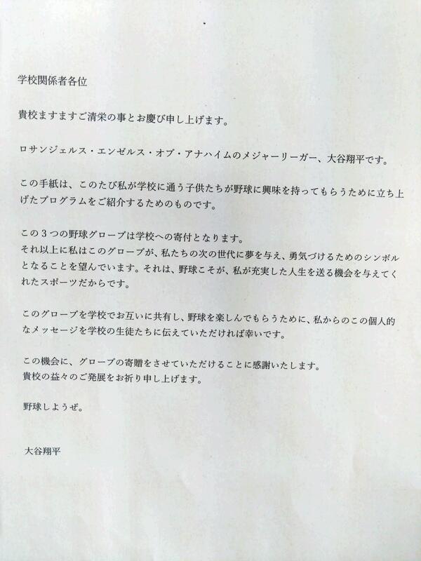 1月10日(水)に大谷選手からグローブとお手紙が届きました。本校の小学部児童は休み時間になるとゴムボールでキャッチボールをしたり、プラスチックバットでホームランをかっ飛ばして遊んでいます。そんな野球大好きな子供たちは新品のかっこいいグローブに大喜びでした。大歓声を上げながらグローブを手に取る子供たちの笑顔がとても印象的でした。早速体育館で野球を楽しんでいました。大谷選手は自分の大好きな野球を一生懸命頑張りました。そして上手になるために毎日毎日努力を重ねました。球磨支援学校の子供たちもそれぞれ大好きなことや得意なことがあります。それぞれの目標や夢に向かって毎日成長しています。