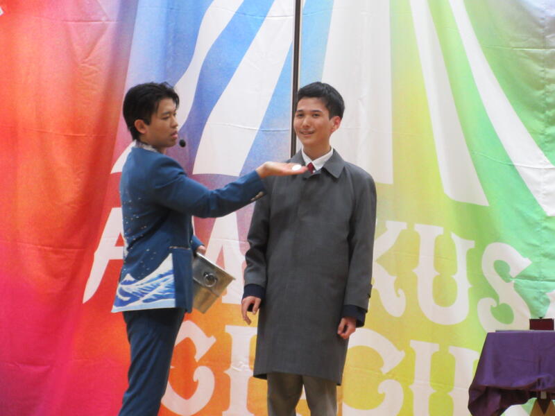 50年近く県南地区、特別支援教育の拠点として頑張ってくれた現校舎への感謝の気持ちを 込めて、【天草サーカス】の公演を行いました。世界トップクラスのパフォーマーによるサーカス実演に体育館は興奮の坩堝(るつぼ)と化しました。