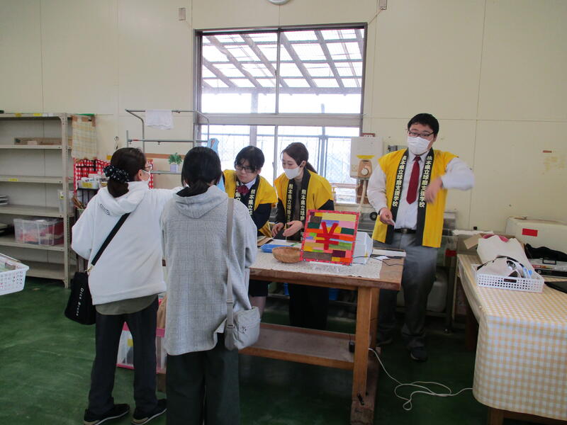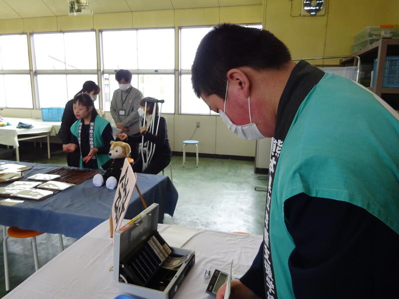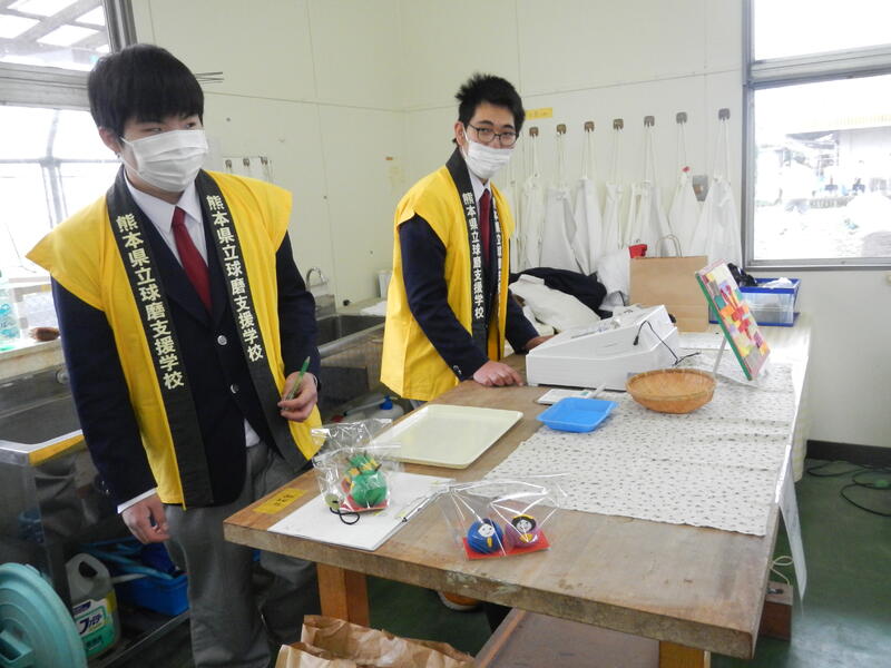 2月4日(土)に小学部の学習発表会と中学部、高等部による作品販売会(通称:ひな市)が予定とおり開催されました。感染症対策により、保護者のみの観覧と作品購入でしたが、とても有意義な一日となりました。小学部の学習発表会では、オープニングからエンディングまで日頃の学習の成果が十分に発揮され、保護者の方々も皆笑顔でした。子供たちも達成感に満ちあふれた素晴らしい表情でした。中学部と高等部による作品販売会では前述した(最近の球磨支援学校㉔)作品を心を込めて説明し、感謝の気持ちで販売することが出来ました。作品の緻密さ、デザイン感覚、形のバランスなど、その完成度の高さに保護者の方々からも高い評価を頂きました。御購入いただいた保護者の皆様ありがとうございました。