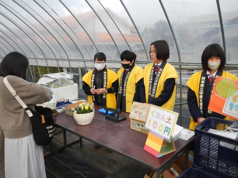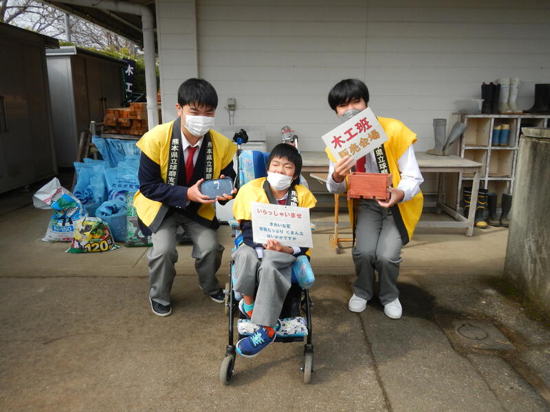 この二年間は新型コロナ感染症の影響で校外実習による販売を断念してきました。しかし、今年度は感染対策を十分に講じたうえで教職員だけによる販売を実施します。予定では八月の後半から九月の前半です。場所は病院や郵便局、スーパーの駐車場などを考えています。保護者の皆様、地域の皆様、球磨支援学校の旗やテントを見受けられたら是非とも子供たちが作った花や野菜、そしてかわいい陶芸用品を御購入いただけると幸いです。