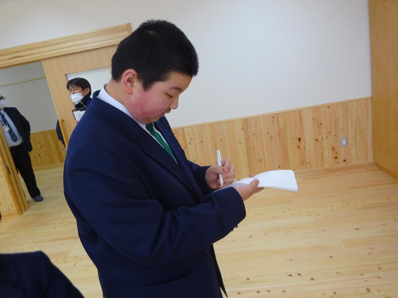 3月18日(月)に児童、生徒、職員で新校舎の見学に行きました。多良木高校跡地に建設され、6月には完全に移転して授業も始まります。広くて綺麗で良い香り・・の校舎に子供たちは大喜びの大感激でした。「感謝の気持ちを忘れず、一生懸命に勉強します」と、いう力強い代表生徒の挨拶がありました。