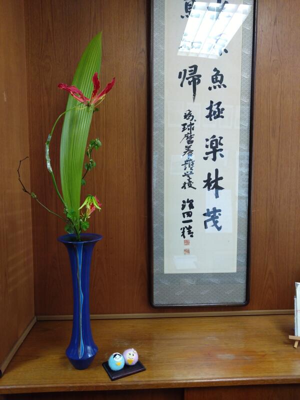 球磨支援学校に赴任して二年。校長室には一日も欠かすことなく生花が飾ってありました。季節に応じて、来校されるお客様に合わせて、学校行事に合わせて、時には私の心身の状況に合わせて生けていただきました。