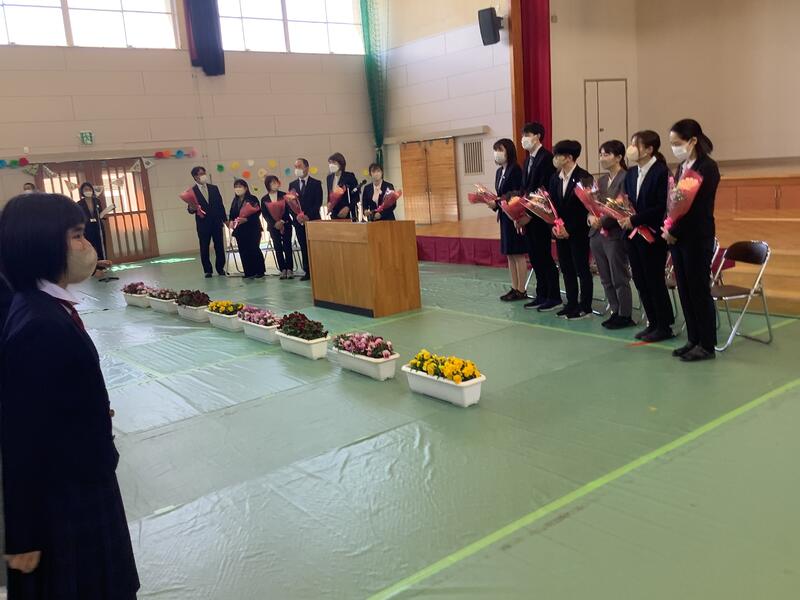 3月27日(水)に転退任式を行いました。今回の人事異動では退職者が3名(1名は役職定年)、転出者が9名でした。在校生をはじめ、卒業生、保護者などたくさんの方々にお見送りしていただきました。球磨支援学校の温かさと、どこにも負けないチームワークを感じることができました。転退任する12名、球磨支援学校での素晴らしい思い出を胸に、次のステージでも一生懸命頑張ります。児童生徒の皆さん、保護者の皆様、地域の方々、本当にありがとうございました。