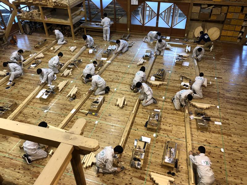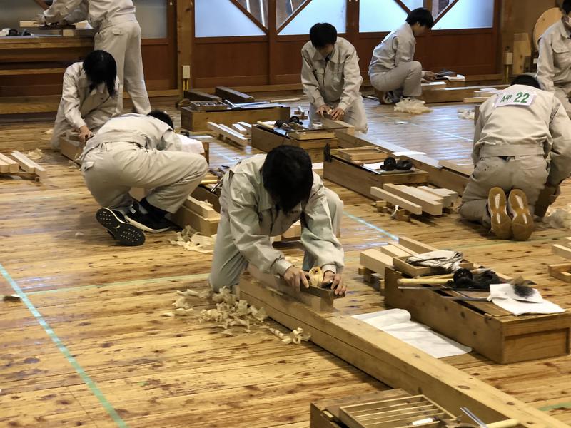 本校にて、3級建築大工技能検定の実技試験がありました。本校から伝統建築コースの1年生20名が受検しました。