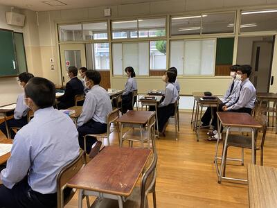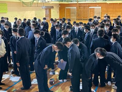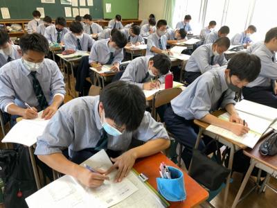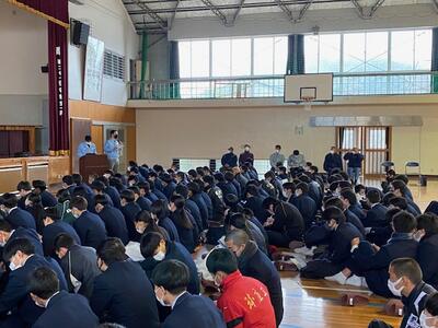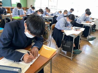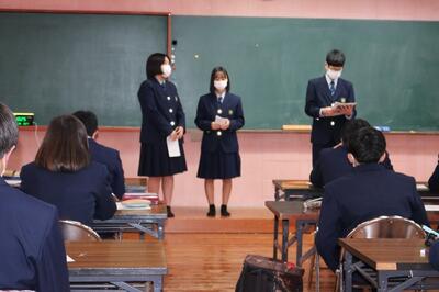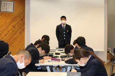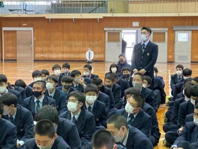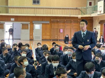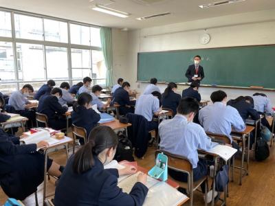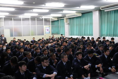 西智博校長の挨拶では、「未来の扉は自ら開くものである。進路実現には強い意志が必要であり、常に感謝の気持ちを忘れず、団体戦として全員で一丸となって受験に臨んで欲しい。」と生徒へ激励の言葉がありました。また、「なぜ勉強するのか?」と問われ、「答えはそれぞれだと思いますが、答えの一つとして『将来正しい判断をするため』『人生の選択肢を広げるため』である。」と話されました。生徒の可能性を最大限に広げるべく、我々教師もまた、日々勉学に励まなければと改めて感じました。