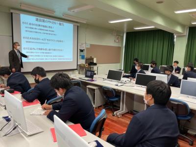 今日の放課後、進学希望者の中でも特に「高等専門学校」を希望する、または興味がある生徒を集めて「高専」の概要について講義を行いました。講師は本校電気科の木村(鹿児島高専出身)が務め、「高専」について初歩的な部分から具体的な対策まで説明しました。本校のような工業高校からの高専編入はその先の選択肢が広がる進路選択であり、本校での学びの後、さらに専門教科の勉強をしたい人にはオススメです。興味がある人は是非進路指導室へ!(明日10日は「大学・専門学校」についてガイダンスを行います!)