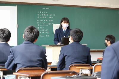 本校の岩崎さんが熊本県立大学主催の「地域課題解決のための学びのプログラム」に参加しています。プログラムは昨年の夏休みから実施されており、1月22日(日)に発表前最後の定期指導が「くまりば」の会議室で行われました。人吉球磨の現状について課題を設定し、中学生、高校生、大学生がグループを作り、協力して課題解決のための糸口を見出し、提案するという取り組み。その中で岩崎さんも普段の高校生活では得られないような知見やものの見方を勉強しています。岩崎さんのグループの課題は「人吉球磨における高校生の地元就職率の減少」についてです。2月12日の報告会に向けてあと一息!頑張ってください。