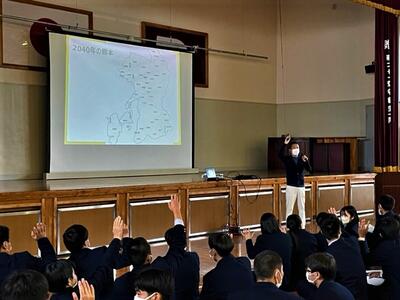 また、先輩からの言葉として、本校卒業生の豊永君が今までの経験を踏まえて述べていました。