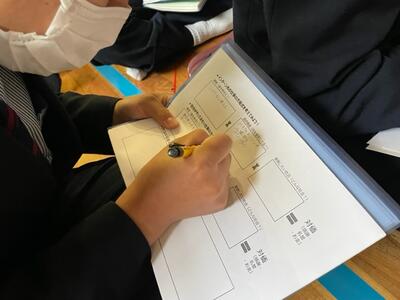 生徒達も、それぞれの観点で「共鳴」するポイントをワークシートに書き留めていました。