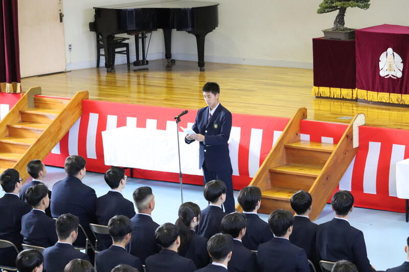 全校生徒に向け、感謝の気持ちを述べる旧生徒会長。