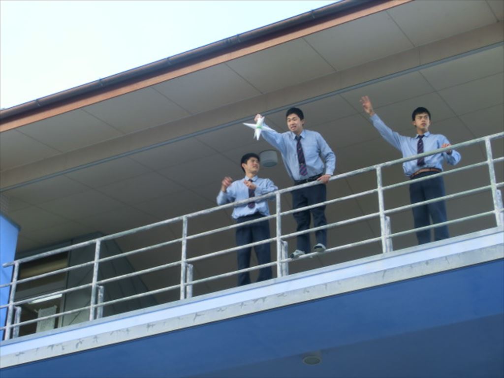 エッグドロップとは理科の実験としてアメリカで生まれました。日本では、東京大学や立命館大学で「エッグドロップ甲子園」などの名称で毎年開催されています。この実験で、科学や物理の知識だけでなく、プレゼンテーション力を身につけ、かつ、ものづくりの楽しさを体験できます。本校では2年ぶりに第2回目の開催で、実習棟約10mの高さで落下させました。