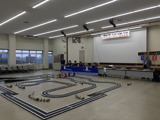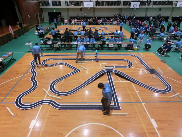 ②乾電池部門・・・主催者が用意した単三電池を20本用いて、外周コースを80分間で走行した距離