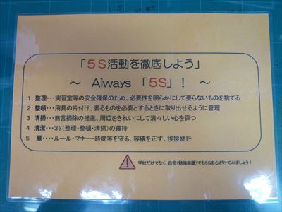 ※5Sとは・・・【製造現場では常識の「整理・整頓・清掃・清潔・躾」のことです。】